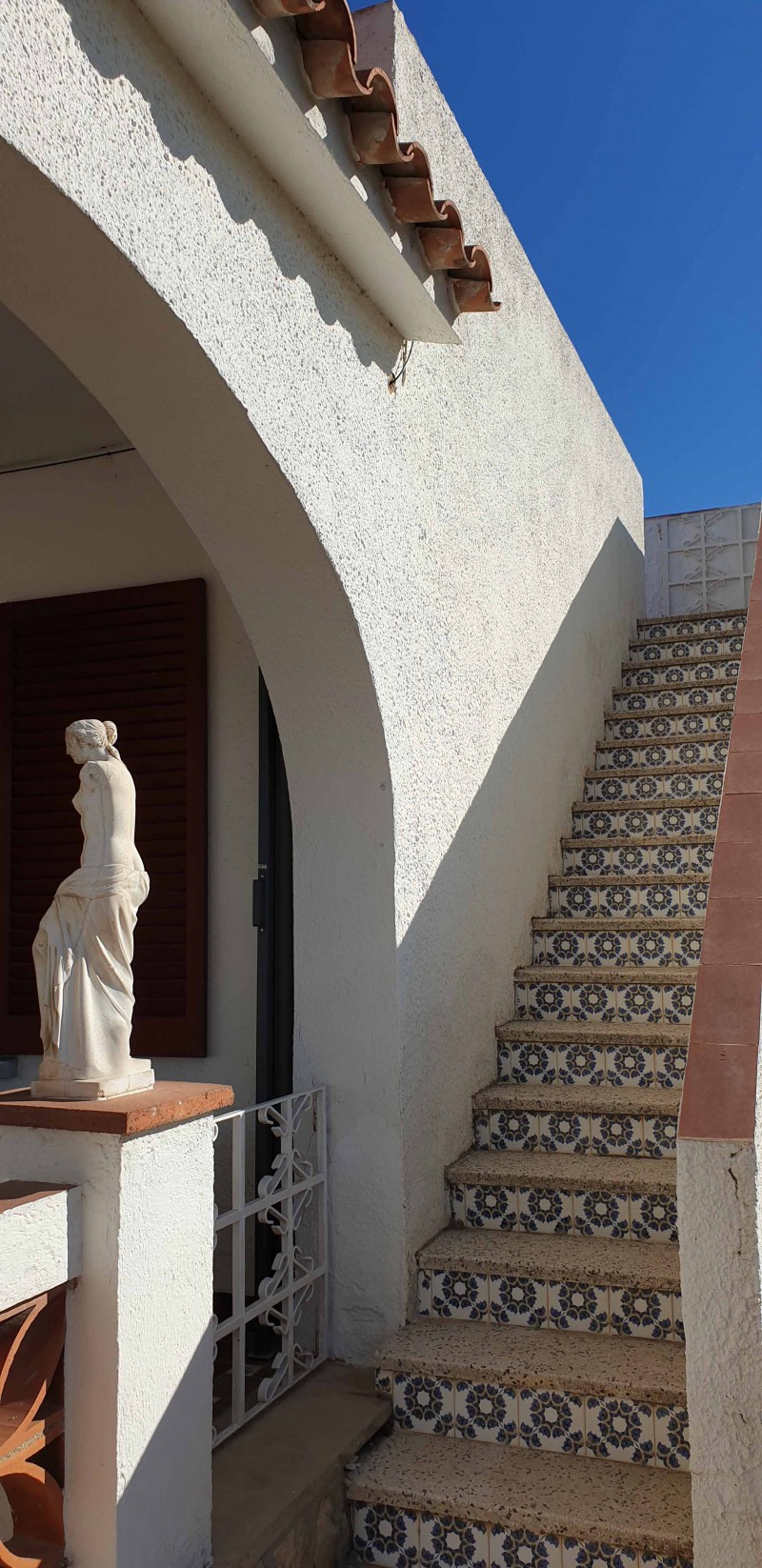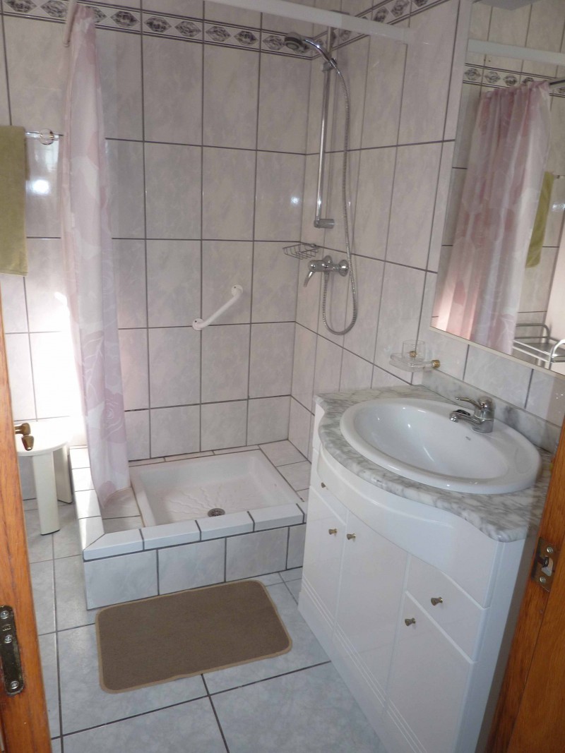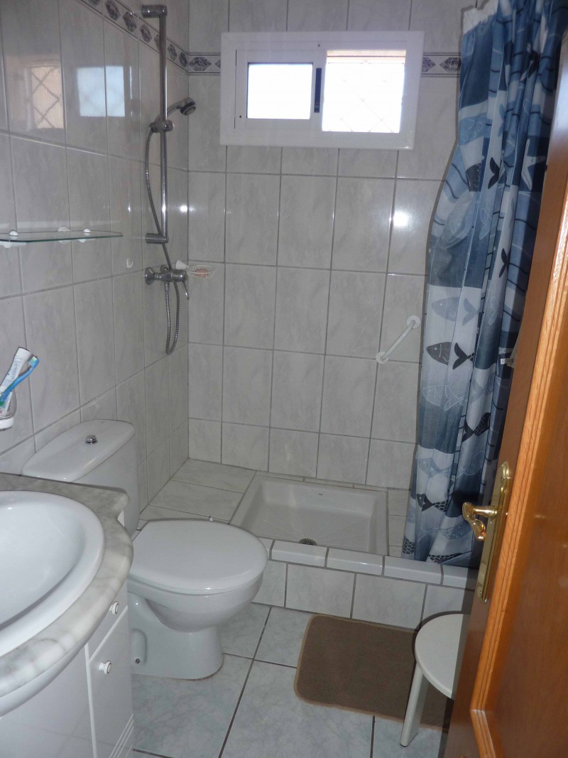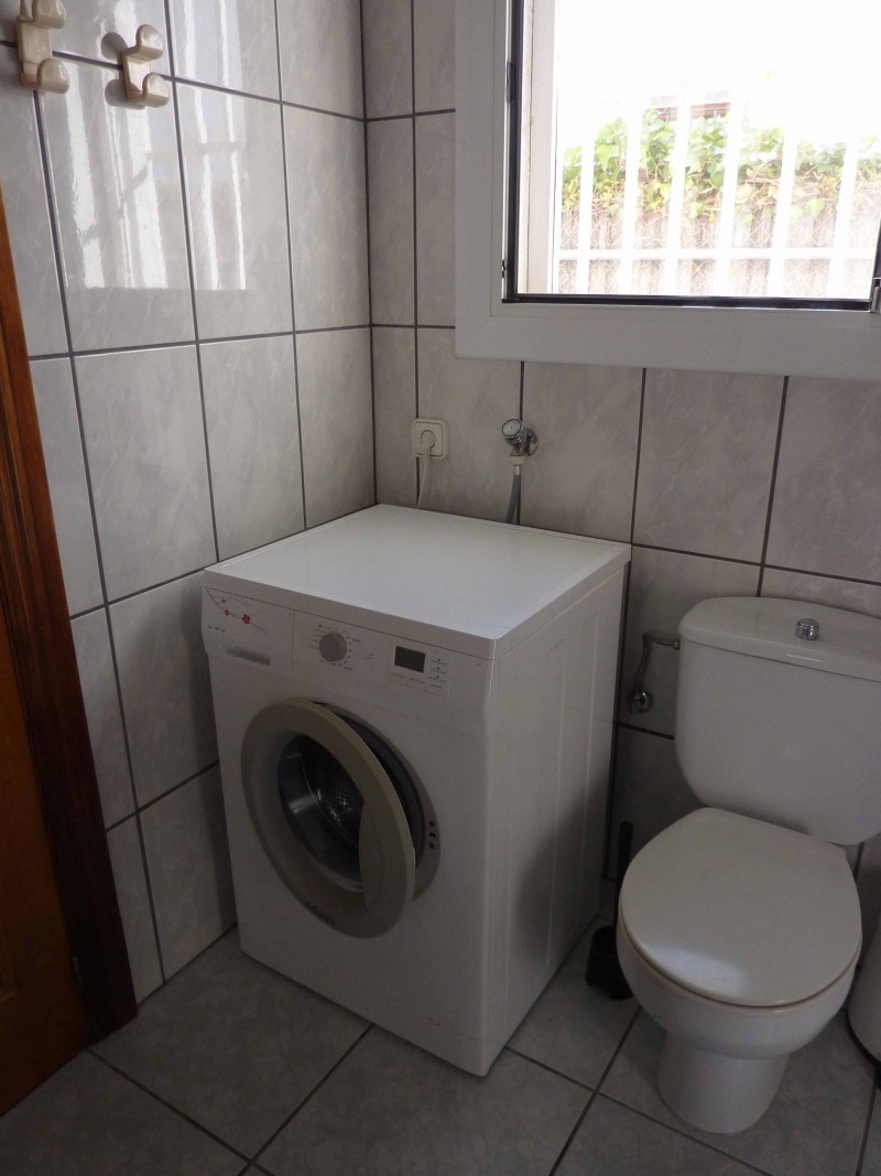Dieses Haus hat drei Schlafzimmer je mit Doppelbetten und geräumigen Einbauschränken, zwei Bäder mit Dusche inkl. einer Waschmaschine, einer Außendusche, einer hinteren Terrasse in Richtung Osten gelegen, so dass man an nicht so warmen Vormittagen schön frühstücken kann.